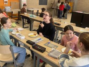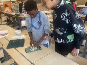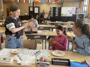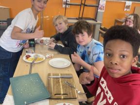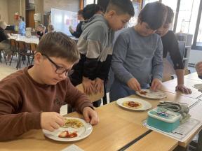 Verder leerden we ook recepten maken. Dus was het ook de uitgelezen kans om eens een recept uit te proberen. We deden alles zelf, met een beetje hulp van de leerkrachten, en genoten met volle teugen van onze eigen omeletten.