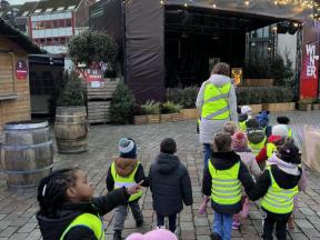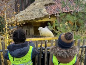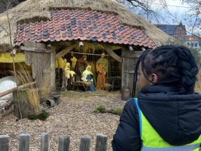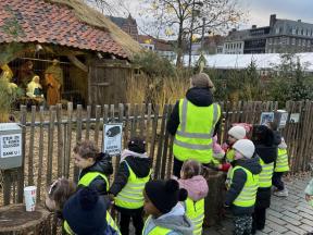Thema Kerst Week 1 We mochten de kerstboom versieren met mooie kerstballen. We tekenden ook een kerstboom op de muziek van krullenbol. Op uitstap naar de kerststal