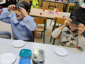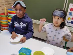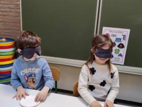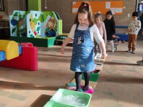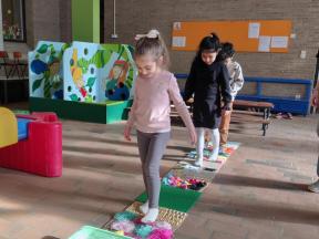 We gingen ook op ontdekking met onze zintuigen door te proeven met een blinddoek, stapten dapper over het blotevoetenparcours en kwamen helemaal tot rust tijdens een fijn momentje yoga.